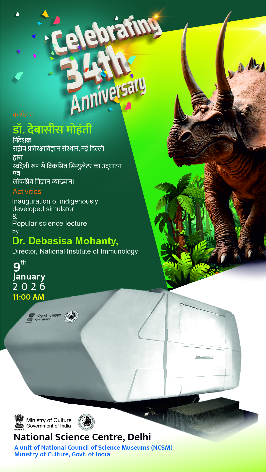 National Science Centre, Delhi, was inaugurated on 9th January 1992 by Shri P V Narsimha Rao, the then Hon’ble Prime Minister of India. National Science Centre, Delhi, is a unit of National Council of Science Museums (NCSM), which itself has 27 Science Centres & Science Cities under its umbrella. NCSM is funded and governed by the Ministry of Culture, Government of India.